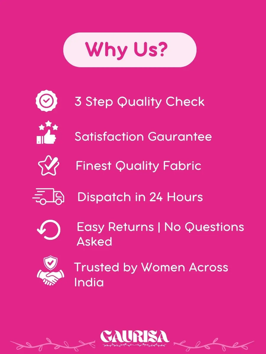 Gaurisa offers a 7-day return & refund policy to our customers. Items must be unused and returned with all original tags and stickers intact.